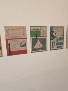 Nella stanza iniziale del piano terra, il visitatore incontra un collage “espanso” in cui si può entrare come in un libro pop-up. Nella seconda stanza possiamo entrare e conoscere il tempo in cui Szymborska ha vissuto in Polonia: la storia, la politica, l’arte. Numerosi i collage sempre più raffinati e, spesso, carichi d’ironia dissacrante che la poetessa ha realizzato per tutta la vita inviandoli ai suoi amici. Lei li chiamava “collanti d’amicizia”.